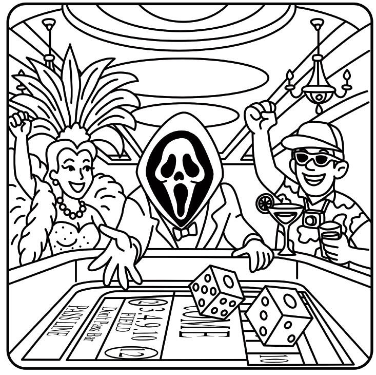 Welcome to the darkest party Vegas has ever seen.🔪🎲🍸🎰Serial Killers Hit Vegas is not your average adult coloring book. This twisted parody adventure combines a story with bold, hand-drawn illustrations—giving horror fans and dark humor lovers the chance to color their way through a night of drink, drugs, murder, and mayhem.Follow three infamous horror-inspired killers from the city’s shadiest alleys to its neon-soaked casinos, high stakes, and all-night mayhem on the Vegas Strip. Every page ups the ante—cameos from a few suspiciously familiar horror legends included. Where the dice roll, bodies drop, and nothing is off limits.💀 What’s Inside📖 A Story-Driven Coloring Book – Not just images, but a storyline to follow